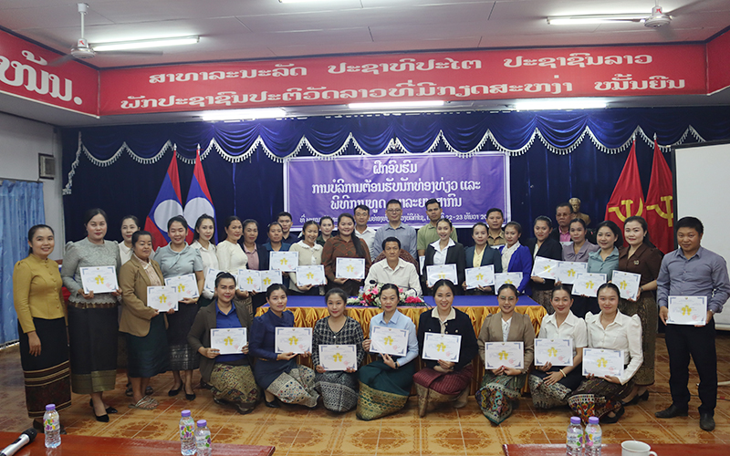 ວັນທີ 22-23 ທັນວາ 2025 ຢູ່ຫ້ອງປະຊູມພະແນກວັດທະນະທຳ ແລະ ການທ່ອງທ່ຽວແຂວງໄດ້ເປີດຊູດອົບຮົມວຽກງານການບໍລິການຕອ້ນຮັບນັກທ່ອງທ່ຽວ, ພິທີການທູດ-ມາລະຍາດສາກົນຂຶ້ນ ໃຫ້ກຽດເຂົ້າຮ່ວມ ແລະ ກ່າວເປີດຊູດອົບຮົມຄັ້ງນີ້ໂດຍທ່ານ ອຸດົມ ວົງໄກສອນ ກຳມະການພັກແຂວງ ຫົວໜ້າພະແນກວັດທະນະທຳ ແລະ ການທ່ອງທ່ຽວແຂວງ, ມີບັນດານັກສໍາມະນາກອນຈາກພະແນກການອ້ອມຂ້າງ ແລະ ພາກສ່ວນທຸລະກິດພາຍໃນແຂວງ ເຂົ້າຮ່ວມ.