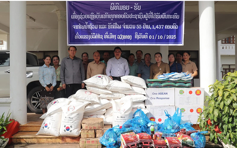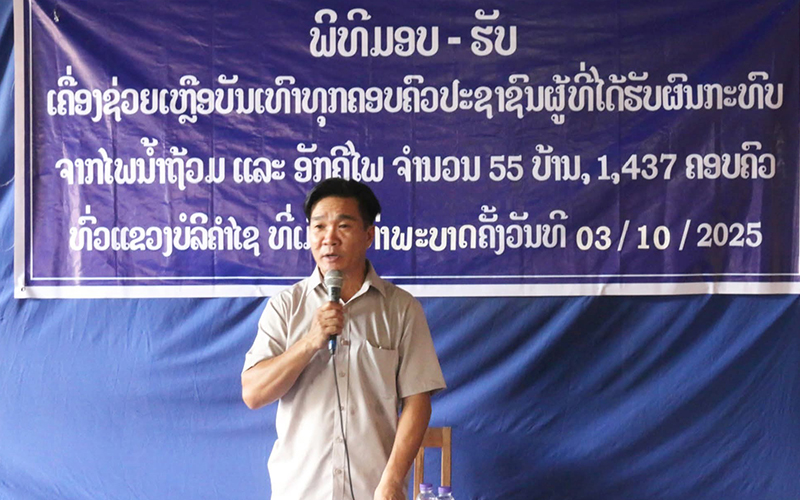 ການລົງມອບເຄື່ອງຊ່ວຍເຫຼືອນີ້ໂດຍແມ່ນທ່ານ ສອນທະນູ ທຳມະວົງ ເຈົ້າແຂວງບໍລິຄຳໄຊ, ທ່ານ ຄຳແຫວນ ປັນຍານຸວົງ ຮອງເຈົ້າແຂວງ ແລະ ບັນດາການນຳຂອງແຂວງ.