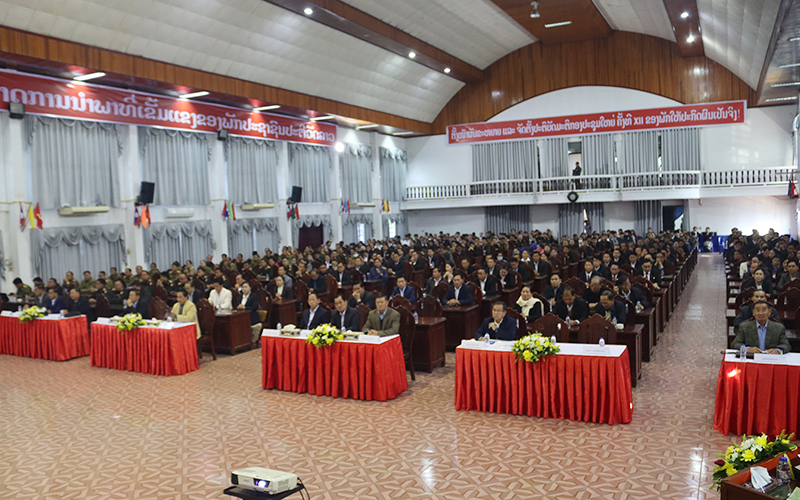 ກອງປະຊຸມໃຫຍ່ຜູ້ແທນທົ່ວປະເທດ ຄັ້ງທີ XII ຂອງພັກປະຊາຊົນປະຕິວັດລາວ ໄດ້ໄຂຂຶ້ນຢ່າງເປັນທາງການໃນຕອນເຊົ້າຂອງວັນທີ 6 ມັງກອນ 2026 ແລະ ປິດລົງດ້ວຍຜົນສຳເລັດອັນຈົບງາມໃນວັນທີ 8 ມັງກອນ 2026 ທີ່ນະຄອນຫລວງວຽງຈັນ ພາຍໃຕ້ຄຳຂວັນ: “ ຍົກສູງບົດບາດການນຳພາ ທີ່ເຂັ້ມແຂງຂອງພັກ, ຕັ້ງໜ້າສ້າງເສດຖະກິດເອກະລາດ ເປັນເຈົ້າຕົນເອງ, ສືບຕໍ່ບູລະນະລະບອບປະຊາທິປະໄຕປະຊາຊົນ ໃຫ້ໜັກແໜ້ນກ້າວຂຶ້ນສູ່ສັງຄົມນິຍົມ ”. ໂດຍມີຜູ້ແທນທັງໝົດ 835 ສະຫາຍ, ຍິງ 123 ສະຫາຍ ທີ່ເປັນຕົວແທນໃຫ້ແກ່ສະມາຊິກພັກທົ່ວປະເທດ 421.865 ສະຫາຍ, ແຂກຖືກເຊີນ 391 ສະຫາຍ, ກອງປະຊຸມຍັງໄດ້ພິຈາລະນາ ແລະ ເປັນເອກະສັນຮັບຮອງເອົາລາຍງານການເມືອງຂອງຄະ