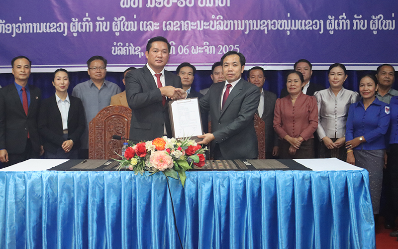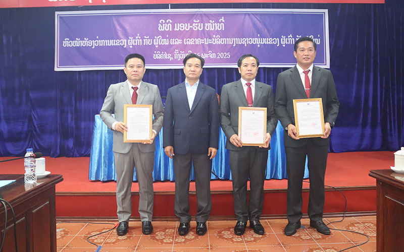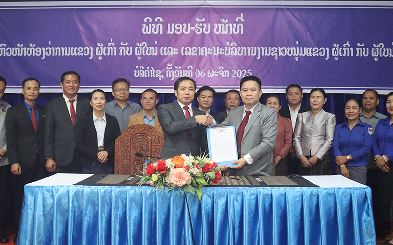ພິທີມອບຮັບໜ້າທີ່ລະຫວ່າງຫົວໜ້າຫ້ອງວ່າການແຂວງ ແລະ ເລຂາຄະນະບໍລິຫານງານຊາວໜຸ່ມແຂວງລະຫວ່າງຜູ້ເກົ່າ ແລະ ຜູ້ໃໝ່ ໄດ້ຈັດຂຶ້ນໃນວັນທີ 6 ພະຈິກ 2025 ນີ້ ຢູ່ທີ່ຫ້ອງປະຊຸມຊັ້ນ3 ຫ້ອງວ່າການແຂວງ ໃຫ້ກຽດເຂົ້າຮ່ວມຂອງ ທ່ານ ປອ ສອນທະນູ ທຳມະວົງ ກຳມະການສູນກາງພັກ ເລຂາຄະນະບໍລິຫານງານພັກແຂວງ, ມີບັນດາຄະນະປະຈຳພັກແຂວງ, ກຳມະການພັກແຂວງ, ຕາງໜ້າພະແນກການ ຂະແໜງການ ອ້ອມຂ້າງແຂວງ ຕະຫຼອດຮອດພະນັກງານ-ວິຊາການທັງສອງພາກສ່ວນເຂົ້າຮ່ວມ.