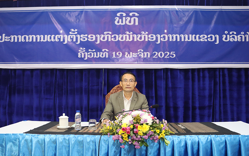 ວັນທີ 19 ພະຈິກ 2025 ຢູ່ຫ້ອງປະຊຸມຂອງຕົນ ຫ້ອງວ່າການແຂວງ ໄດ້ຈັດພິທີປະກາດການແຕ່ງຕັ້ງ ຮອງຫົວໜ້າຫ້ອງວ່າການແຂວງ ແລະ ຫົວໜ້າຂະແໜງ, ຮອງຂະແໜງຂຶ້ນໂດຍການເປັນປະທານຂອງ ທ່ານ ບຸນລ້ຽງ ດວງສະເພົາທອງ ຮອງປະທານຄະນະກຳມະການປົກຄອງແຂວງ, ມີບັນດາ ຫົວໜ້າຫ້ອງວ່າການ, ພະແນກການ, ຫົວໜ້າຂະແໜງ ຮອງຂະແໜງ , ພະນັກງານ-ລັດຖະກອນ ພາຍໃນເຂົ້າຮ່ວມ.